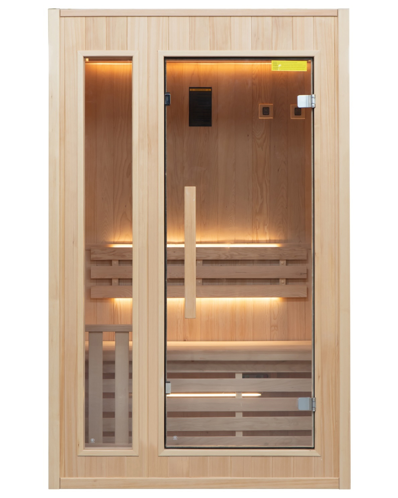 Hergestellt aus zertifiziertem kanadischem Fichtenholz, bietet es unvergleichlichen Komfort. Das Design ist schlicht und elegant und repräsentiert typisch eine traditionelle Sauna. Es kann täglich alleine oder mit der Familie genutzt werden.